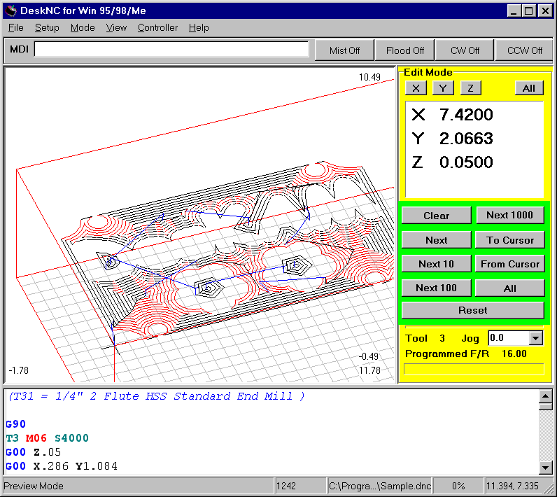 representation of your part in this screen capture. You will be able to test your G-Code and actually see the